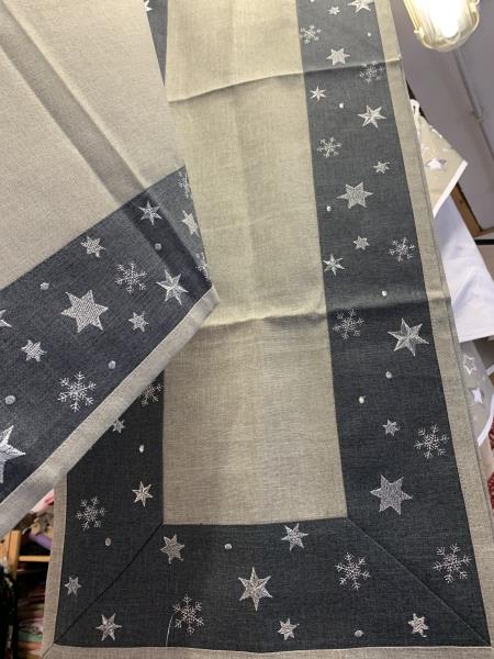 Carré assorti au chemin de table. 19.90€ Carré : 85/85 cm. 19.90€ Chemin de table : 40/140 cm. Ensemble chic et festif…