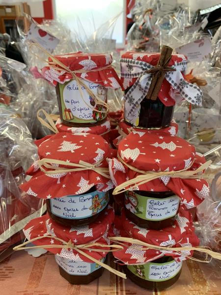 Gelée de pommes du verger local, au pain d’épice et épices de Noël. Pot de 400 gr.