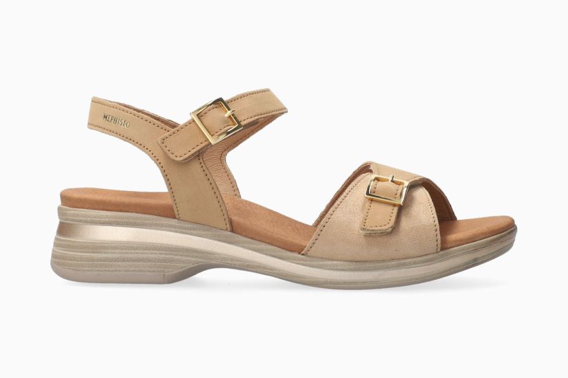 Sandale au look tendance et léger qui se caractérise par une coupe finement travaillée. L'intercalaire SOFT-AIR, ainsi que le SHOCK-ABSORBER, contribuent à réduire les chocs au minimum pour une marche souple et sans fatigue. Avec la technologie AIR-RELAX, l'anatomie du pied est respectée afin d'éviter l'affaissement de la voûte plantaire. Les brides réglables et auto-agrippantes avec leurs boucles décoratives, permettent un ajustement et un confort parfait. Sa doublure est en cuir avec une touche de textile pour plus de confort.