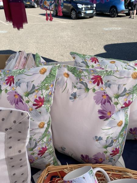 Housse ou coussin ou coussin complet en 40/40 cm. Imprimé fleuri assorti au carré 85/85 et au chemin de table 40/140 cm.
