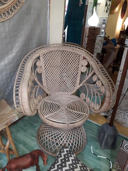 Superbe fauteuil en rotin tressé artisanalement.Pour passer un hiver confortable et ethnique chic!