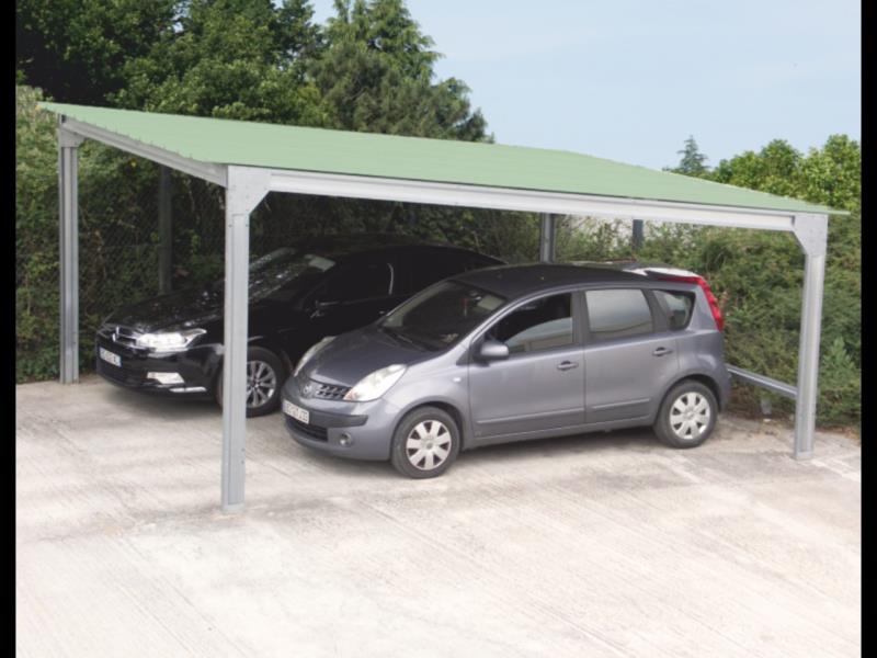 Garage pour deux véhicules Largeur : 5 m - Profondeur : 5.36 m Couverture bac acier laqué (coloris au choix) Bardage et porte en options Devis gratuit Livraison gratuite sur la Creuse Prix : 1470€ TTC Nombreux modèles d'abris à découvrir en exposition permanente
