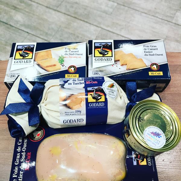 Foie gras Godard mi cuit au torchon en lobe ou stérilisé de 70gr à 1kg