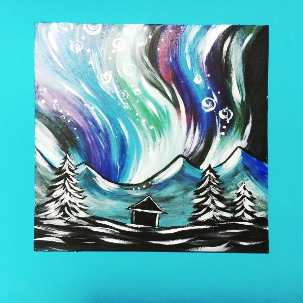 Atelier pour les enfants de 4 à 9 ans, de 14h à 15h30. Aurore Boréale: dessin et peinture acrylique