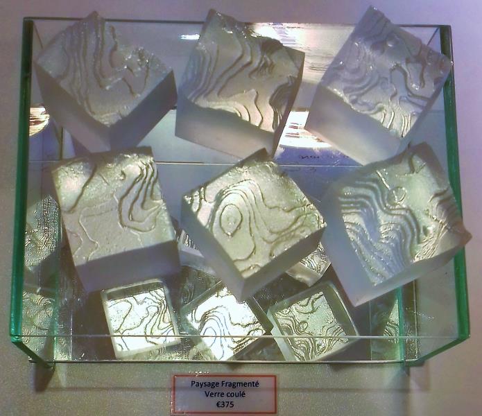 Cette pièce en verre a été moulée, après une visite dans l'ancien village de Chysaucester, dans le sud-ouest des Cournailles. L'artiste voulait créer des oeuvres qui reflètent quelque chose d'ancien et de moderne, comme une affirmation du continuum temporel ou de la relativité du temps. A l'aide de la modélisation informatique et d'un routeur à commande numérique, un modèle à relief a été créé à partir d'une carte de relevé d'ordonnances de la région et de moules. La forme a ensuite été moulée dans du verre.