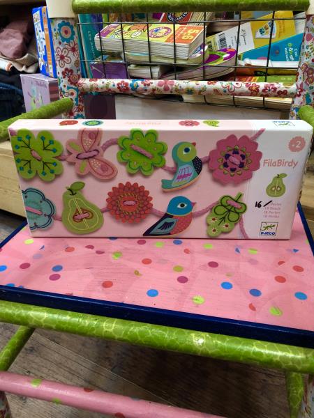Perles en bois colorées à enfiler pour les enfants à partir de 2 ans .