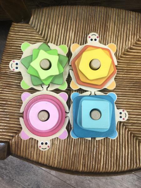 4 tortues s’assemblent comme un puzzle, développe l’éveil et la motricité des plus jeunes .