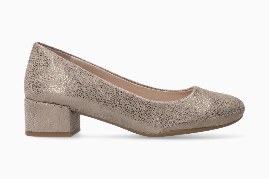 Escarpin discret avec talon bottier mi-hauteur.