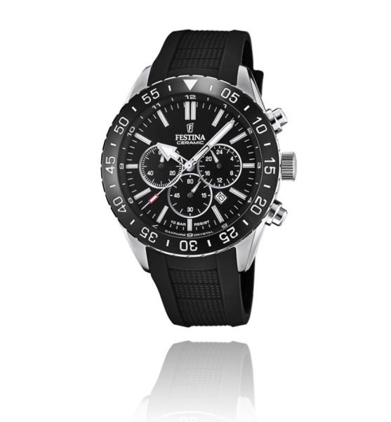 Montre homme Boîte acier inoxydable Lunette en céramique Bracelet caoutchouc