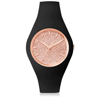 MONTRE DAME GLITTER BRACELET SILICONE NOIR FOND PAILLETE ETANCHE 10ATM
