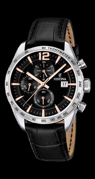 MONTRE FESTINA HOMME TIMELESS CHRONOGRAPHE BRACELET CUIR NOIR BOITE ACIER INOXYDABLE ETANCHEITE 5 ATM 126241