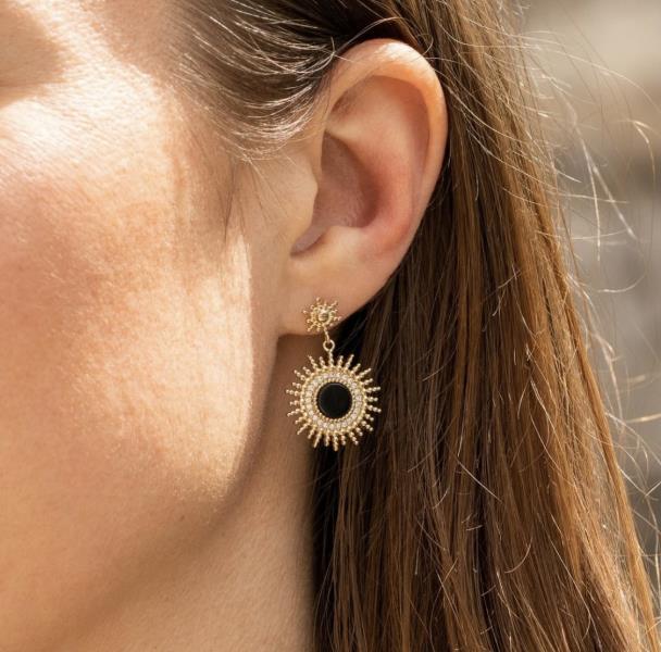 Boucles d’oreilles plaqué or 18k, oxyde de zirconium et agate noire