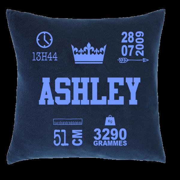 Décorez une chambre d'enfant avec ce coussin personnalisé. Parfait comme cadeau de naissance, ce coussin suivra bébé tout au long de sa vie. Choisissez la couleur d'impression et la couleur du coussin qui s'accordent le mieux à sa chambre ou à vos goûts. Les combinaisons entre les couleurs de coussins et les couleurs d'écriture sont infinies. Caractéristiques : - Housse de coussin 40cmx40cm pur coton (220 g/m²) - Fermeture zippée. - Lavage sur l'envers à 30° - Coussin de rembourrage 45x45cm