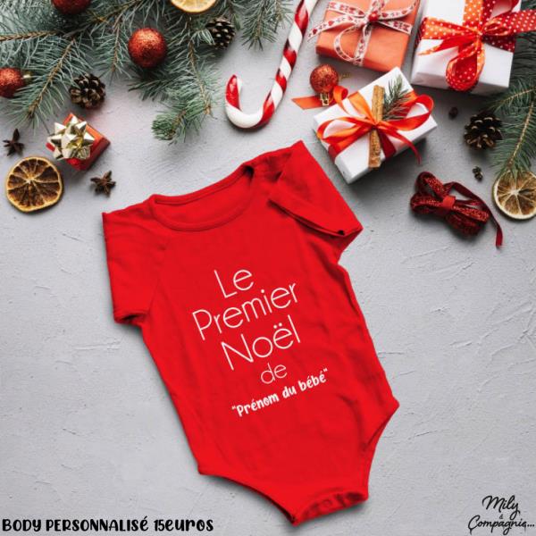 Quoi de mieux qu’un body personnalisé pour fêter son 1er Noël ? En plus, Bébé sera super craquant tout de rouge vêtu !!! Plusieurs couleurs de marquage disponibles.