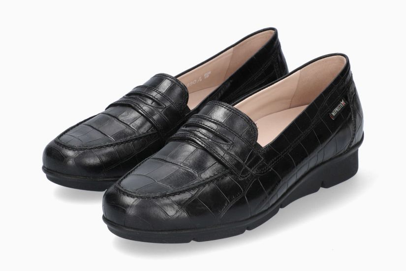 Classique et intemporel, ce mocassin est un incontournable. Ce mocassin noir pour femme est composé de cuir imprimé imitation animal.