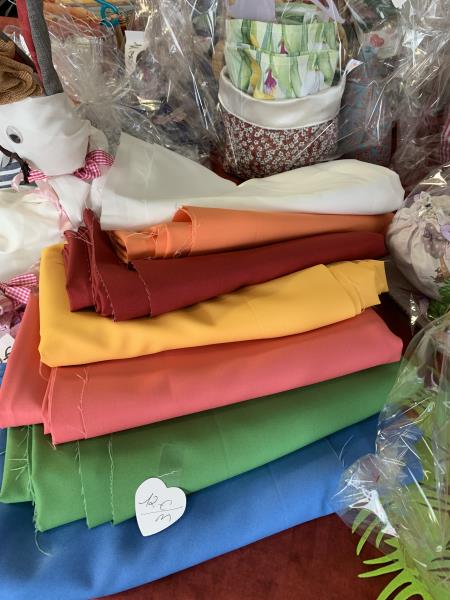 Jolis tissus unis d’excellente qualité en polyester 142 cm en largeur, pour la création de nappes ou autre deco…