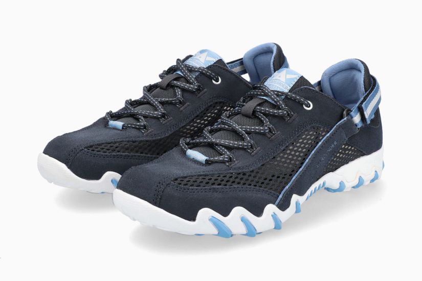 Avec cette chaussure vous surmonterez les défis du quotidien. La bride réglable et auto-agrippante, permet un ajustement et un confort parfait. Cette chaussure pour femme dans un beau bleu se distingue surtout par son design sportif et perforé et la qualité de la matière en velours et textile.