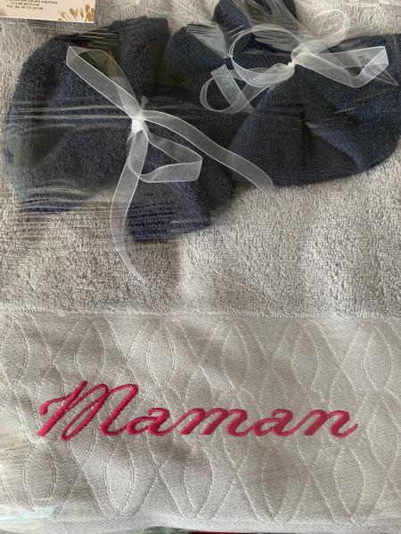 Serviette de bains assortie de 2 gants de toilette. Cadeau intemporel à offrir !